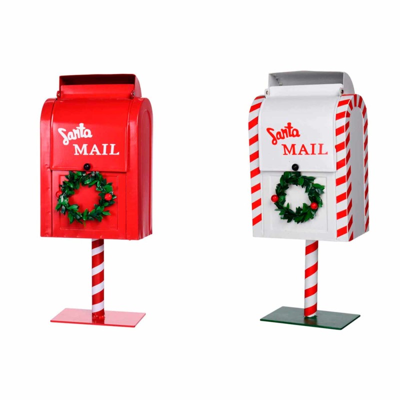 Boîte aux lettres de Noël en métal avec porte. D'une hauteur de 37 cm et disponible en deux coloris différents au choix, conçu pour être placé dans votre entrée et pour y conserver tous vos vœux de Noël. Grâce à sa porte, toutes les notes et lettres peuvent être bien rangées pour que le Père Noël puisse les récupérer. Un Noël plein de rêves !