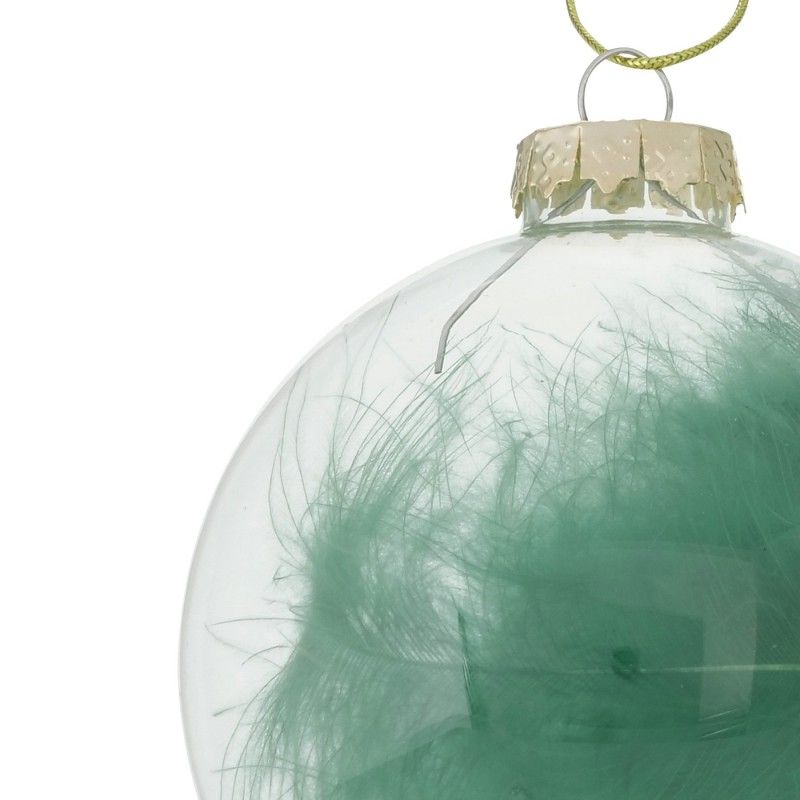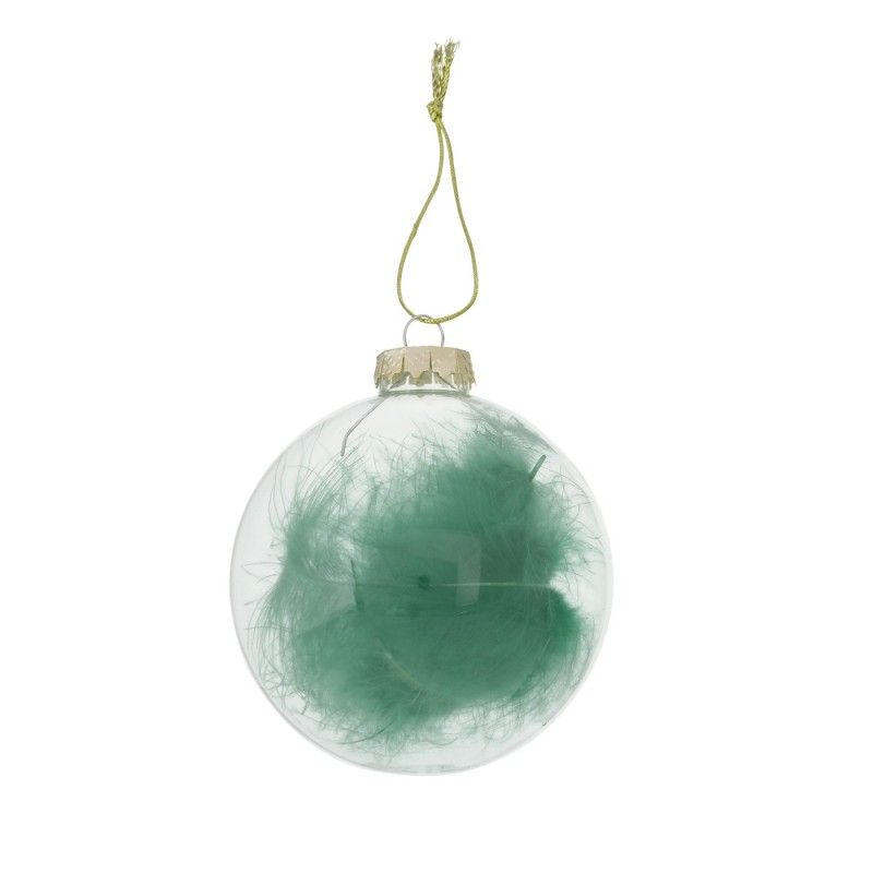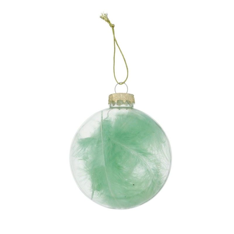 Boules de Noël avec détail de plumes vertes. Profitez d'un design unique avec ces boules suspendues. Combinez-les et créez une décoration spéciale.